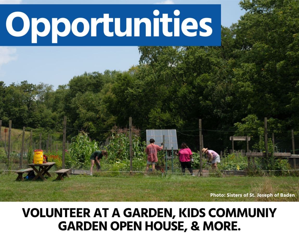 Sisters of St. Joseph of Baden's next Volunteer Service Day is from 9:30 a.m. to 2:30 p.m., weather permitting, on Saturday, Aug. 23. All are welcome to visit the grounds, gardens, chickens, and Sisters anytime!